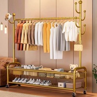 室内用モダンな二段式メタル衣類ラック、厚みのある強化乾燥ラック、コートハンガー付き、リビングルーム収納